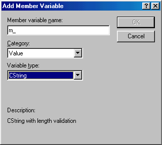 Выберем в списке Control IDs итендификатор IDC_TEST_EDIT и щелкнем на кнопку Add Varible, выведется такое диалоговое окно: