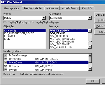 Чтобы связать код с событием WM_KEYDOWN, выполните следующие действия: