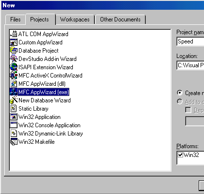 Выберем там MFC AppWizard(exe), это значит вы хотите создать запускаемый файл.