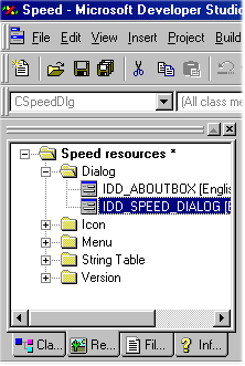 Сейчас мы визуально спроектируем диалоговую панель. Для этого вначале выбирете закладку "Resourse View" и раскройте пункт Speed Resource, как показано на рис. 1.5.